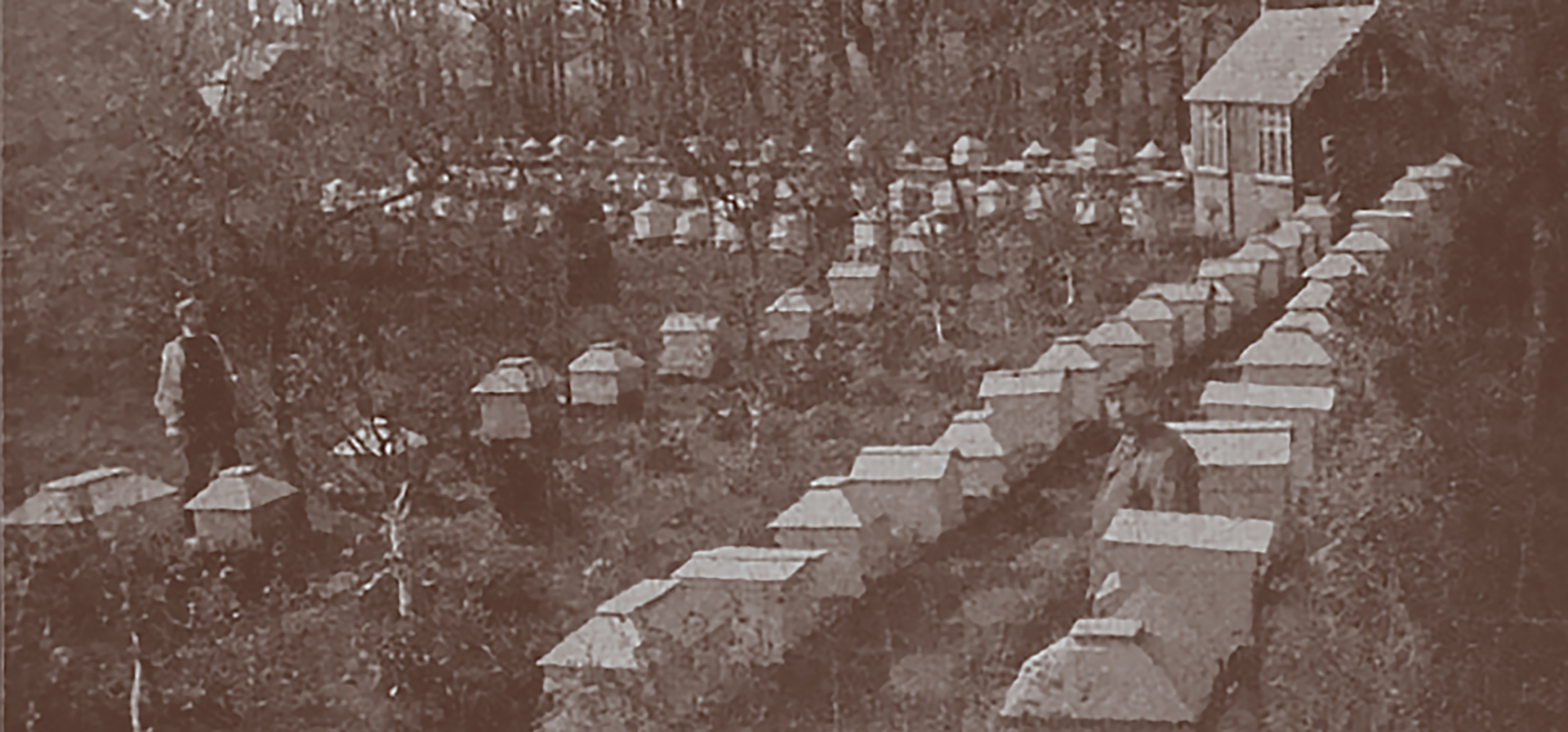 Noah Webster’s 1864 Unabridged Dictionary defines a bee garden as “a garden or inclosure [sic,] to set beehives in; an apiary.” The Royal Dictionary-Cyclopaedia published in London and New York in 1862 provided an identical definition. The Garden magazine, 3 Feb. 1883, gave an emphatic definition of a bee garden, being a "bee stand (apiary)" (p.123). The British Bee Journal, 28 July 1898 (p.295) published a series of "bee-garden" pictures from late 1896 in its “Home of the Honey Bee” series. The smallest number of hives eligible for depiction was arbitrarily set at six. In respect, the following image was presented posthumously.