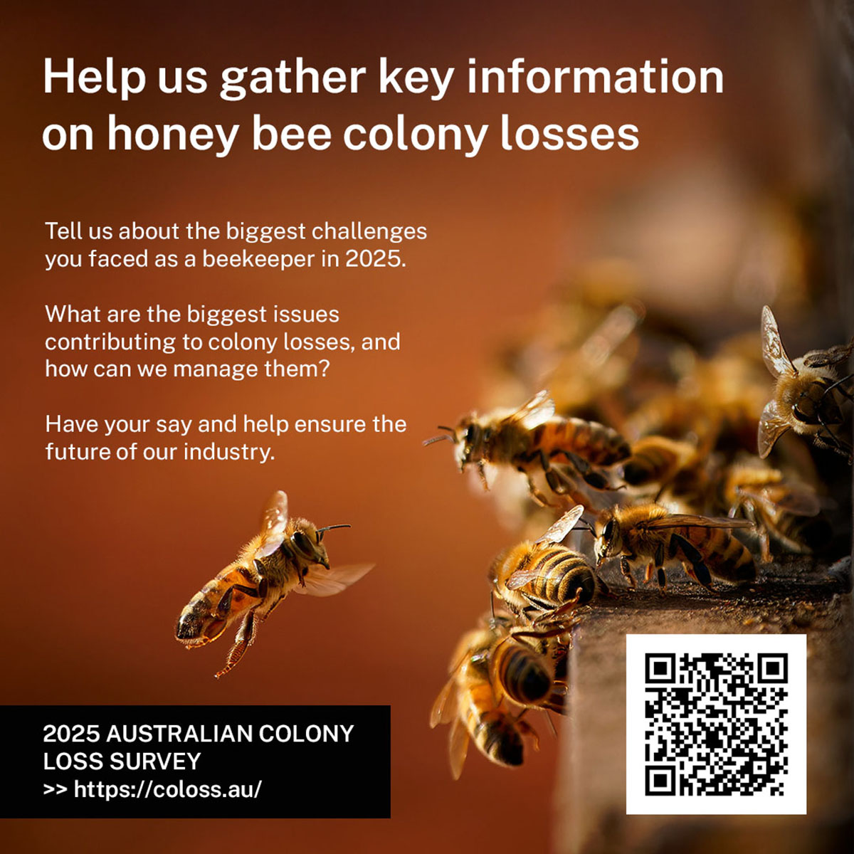 The Australian honey bee colony loss (COLOSS) survey is a national survey of beekeepers to monitor honey bee colony losses and management practices.Visit website